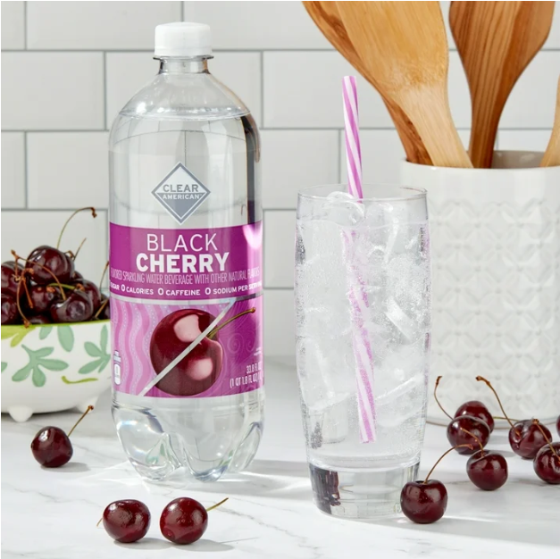 Have a drink that's just as refreshing as it is tasty with a 33.8 fluid ounce Clear American Black Cherry Sparkling Water. This natural sparkling beverage offers a crisp, delicious flavor in each and every sip and is just right for any occasion. The fruit-flavored sparkling water has a delectably sweet black cherry flavor yet is light enough to deliver a smooth and fruity taste. Drink it while on the go, in the office or while out lounging by the pool. This naturally flavored bubbly sparkling water is made without sugar, caffeine, calories or sodium and is a refreshing alternative to traditional soda drinks and a good choice for health-conscious individuals. It even makes a nice choice for stashing in a cooler for the next big party, backyard barbecue or other family gathering. Enjoy this Clear American Black Cherry Sparkling Water at room temperature or store it in the fridge for a thirst-quenching, ice-cold beverage anytime.