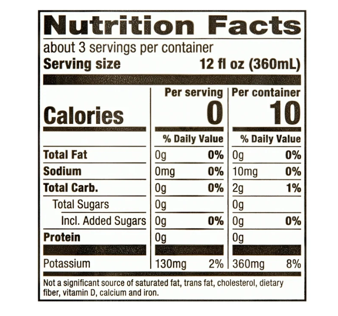 CARBONATED WATER, CITRIC ACID, POTASSIUM CITRATE, NATURAL FLAVOR, ASPARTAME, POTASSIUM BENZOATE (PRESERVATIVE), ACESULFAME POTASSIUM.