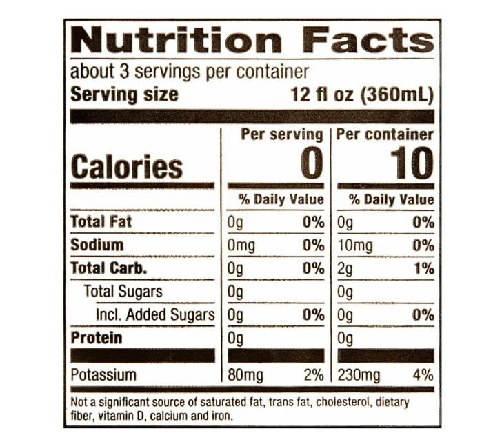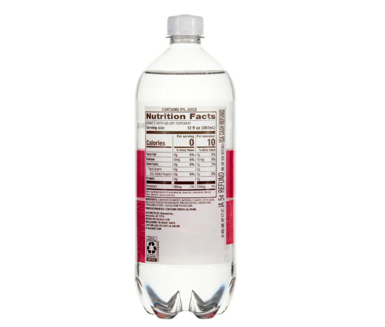 CARBONATED WATER, NATURAL FLAVOR, CITRIC ACID, MALIC ACID, POTASSIUM BENZOATE (PRESERVATIVE), ASPARTAME, POTASSIUM CITRATE, ACESULFAME POTASSIUM.