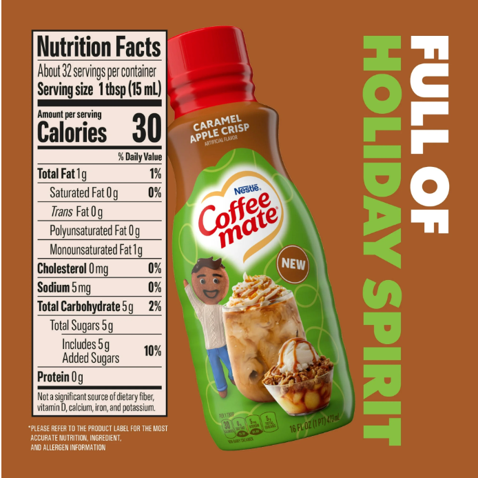 Coffee mate Caramel Apple Crisp Flavored Creamer, Non-Dairy, Gluten-Free, Apple Caramel Creamer, 32 Servings 16 fl oz