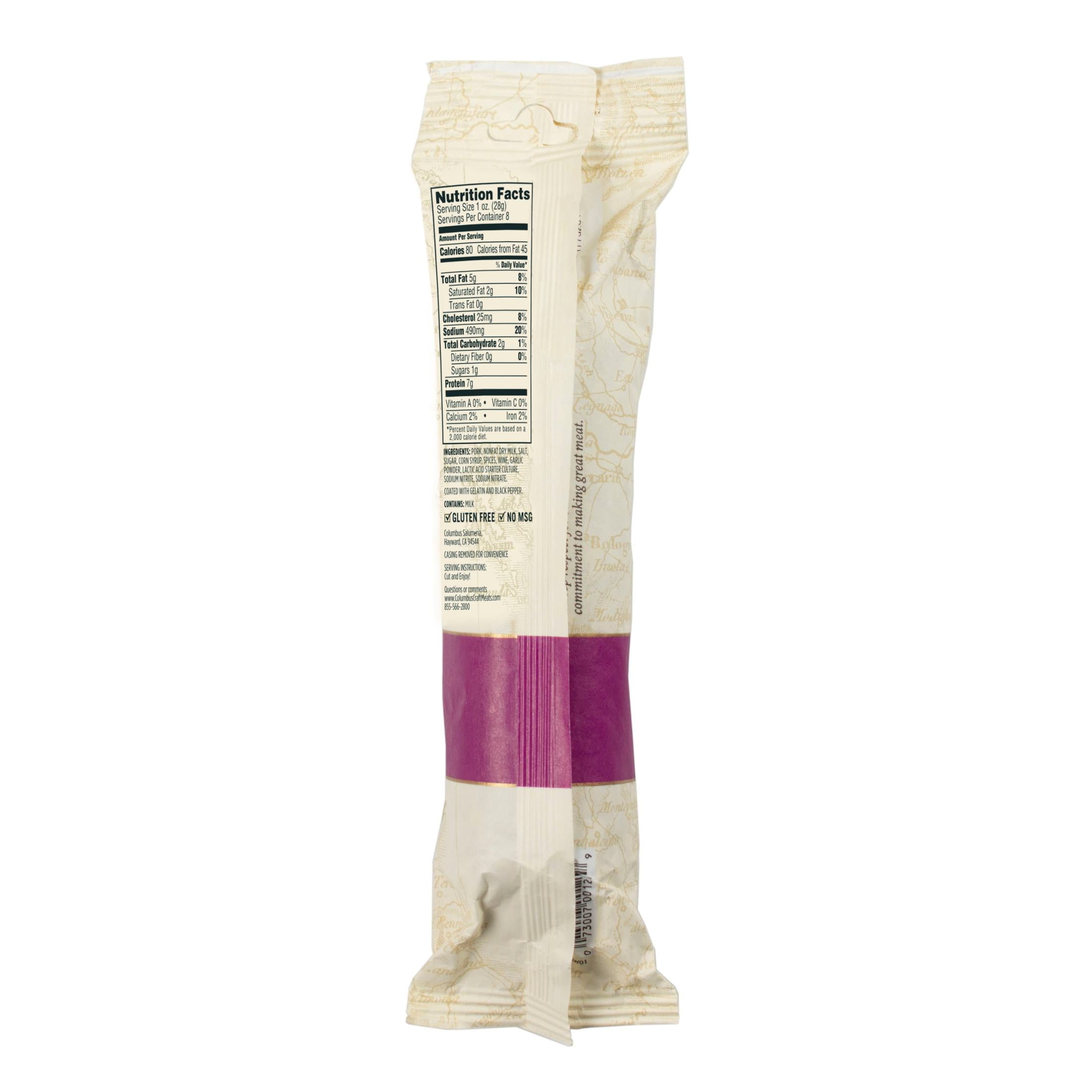 COLUMBUS Peppered Salame, Charcuterie Meat, 8 oz Stick