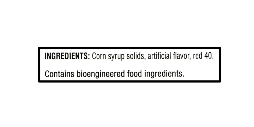 Corn Syrup Solids/Artificial Flavor/Red #40
