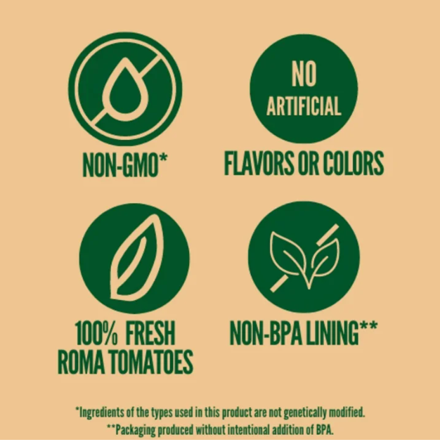 No artificial flavors, non-GMO, vine ripened tomatoes