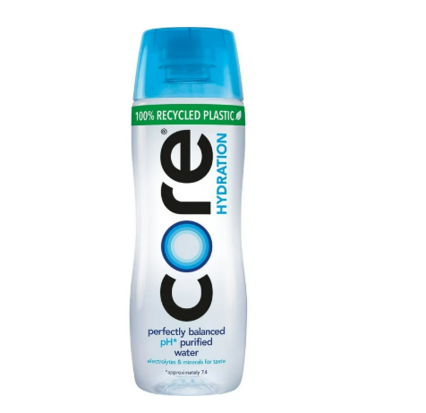 Core Hydration is perfectly balanced pH water designed to work in harmony with your body’s natural pH of 7.4*. Purified and enhanced with electrolytes and minerals, Core Hydration is designed for an active lifestyle and will help you stay feeling your best. Core believes true balance is on the inside as well as the outside, that’s why Core is committed to a more sustainable future. Now, in addition to Core being recyclable, it’s bottles are also made with 100% recycled plastic (excludes cap and label)! Core is available in five sizes, including a wide mouth sports cap. The bottle was also envisioned with your lifestyle in mind — the contoured silhouette makes it easy to hold when on the go, the wide mouth opening makes hydrating quicker and the cup cap makes it easier to share with friends. Hydrate with the clean, crisp taste of Core and enjoy staying balanced. Find Your Balance. Find Your Core.