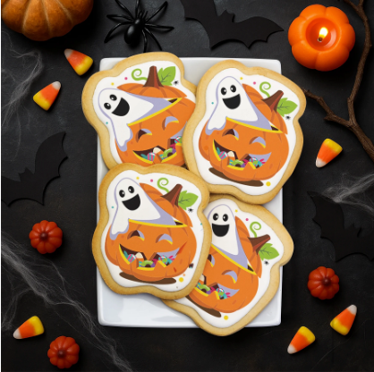 Get into the Halloween spirit with our Ghost in a Pumpkin sugar cookie! This adorable treat features a friendly ghost, decorated on a soft and delicious vanilla sugar cookie. Each cookie is individually wrapped for extra freshness, making it the perfect snack for trick-or-treating giveaways, Halloween party favors, or lunchbox surprises. Grab one (or a few) and enjoy the spooky fun—just in time for the season!
