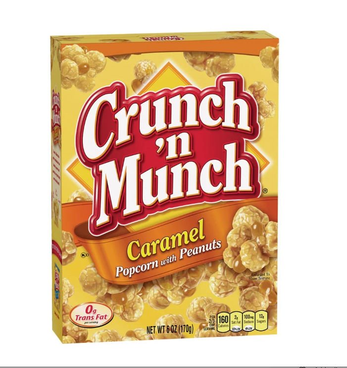 Includes one 6-ounce box of CRUNCH 'N MUNCH Caramel Popcorn with Peanuts