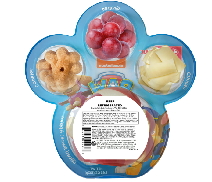 - Fresh Sliced Apples, String Cheese, Grapes and Cookies in iconic Paw Patrol graphics from the #1 preschool show.