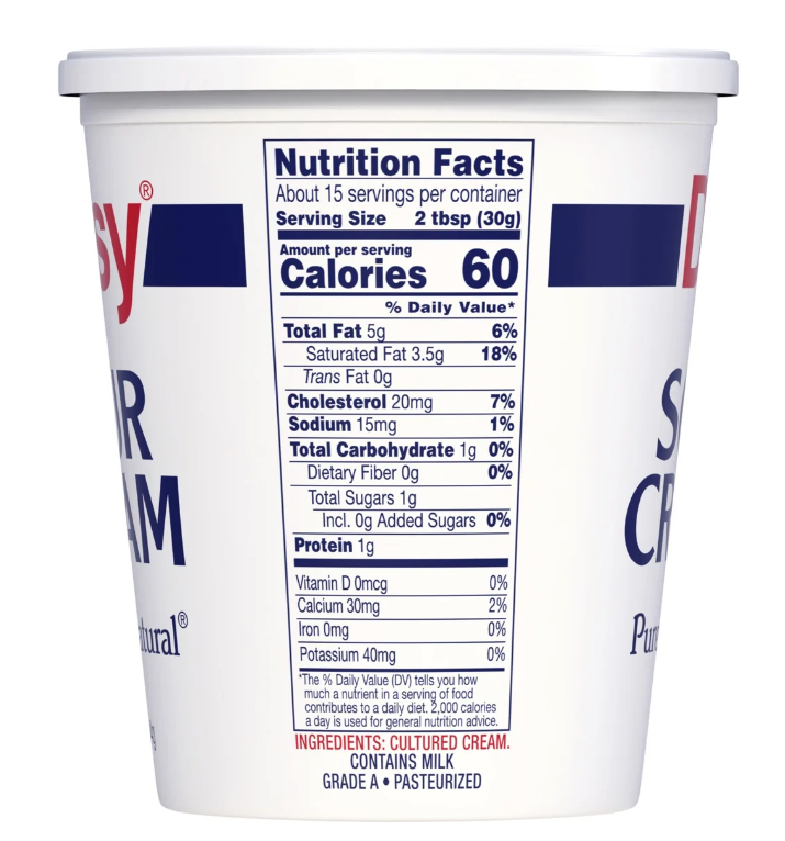 Daisy Pure and Natural Sour Cream, 16 oz (1 lb) Tub (Refrigerated)