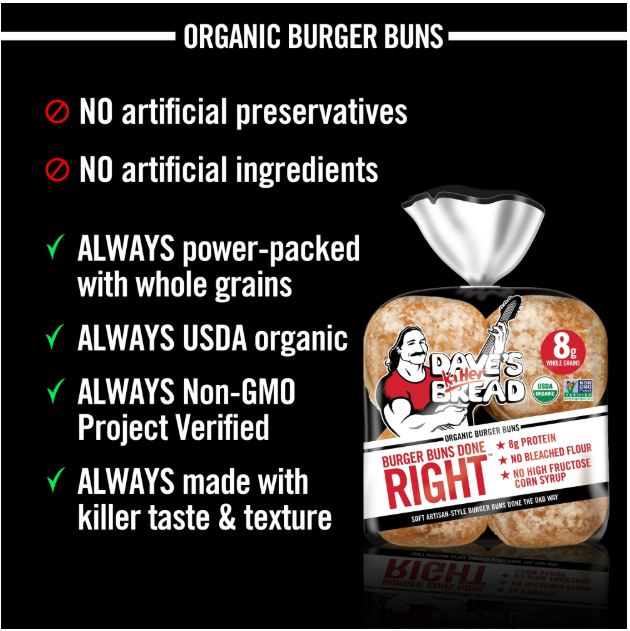 Dave's Killer Bread® is Non-GMO Project Verified and USDA organic, plus has no high-fructose corn syrup, artificial preservatives or artificial ingredients