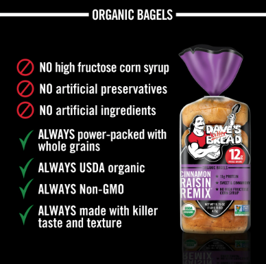 - Dave's Killer Bread® Cinnamon Raisin Remix® bagels give you rockin' flavor to start your day