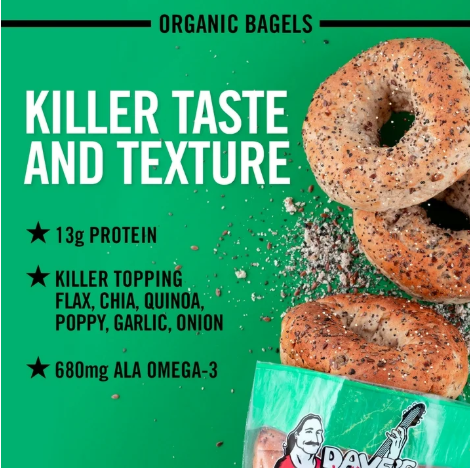 These USDA organic bagels have killer toppings like: flax, chia, sesame, poppy, garlic and onion