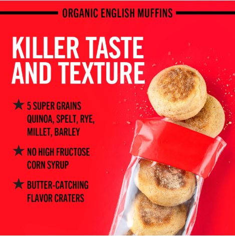 Dave's Killer Bread® Killer Classic® English Muffins are what you love about a classic English muffin, but made killer by the team at Dave's. Each USDA organic English muffin amps up classic taste and texture that is sure to rock your breakfast. Each USDA organic English muffin includes 8 grams of whole grains, and features butter-catching flavor craters to create an out-of-this-world breakfast experience. These tasty, Non-GMO Project Verified English muffins are baked with five super grains, including quinoa, spelt, rye, millet and barley. Plus, no high-fructose corn syrup, no artificial preservatives, no artificial ingredients and no bleached flour. You can trust Dave's Killer Bread® to deliver killer taste, texture and whole grain nutrition. Killer Classic® English muffins are pre-sliced and just what you need for excellent eggs benedict, hearty breakfast sandwiches or buttery English muffins on the go. The story of Dave’s Killer Bread® began at the Portland Farmers Market, when Dave Dahl and his nephew brought some loaves of Dave's bread to sell. For Dave, this marked the beginning of a new chapter in his life. Though he grew up in a family of bakers, his life took a different path. A path that landed him in prison for 15 years. Determined to prove his worth and make a positive impact, Dave worked tirelessly to bake breads that tasted unlike anything else on the market — packed with seeds and grains, made with only the very best organic and Non-GMO Project Verified ingredients. Dave’s Killer Bread® believes everyone is capable of greatness. One in three of the company's employee partners at their Milwaukie, OR bakery has a criminal background—but your past doesn't define your future. As a proud Second Chance Employer, Dave’s Killer Bread® truly believes everyone deserves a second chance to become a Good Seed.