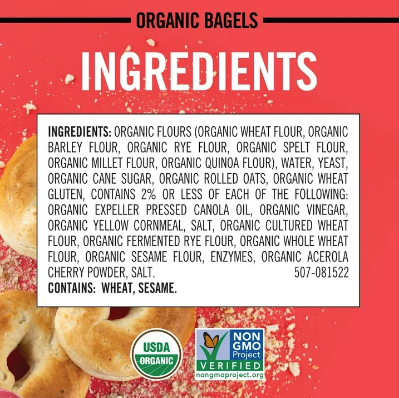 - These soft and delicious USDA organic bagels are baked with five super grains: quinoa, spelt, rye, millet and barley