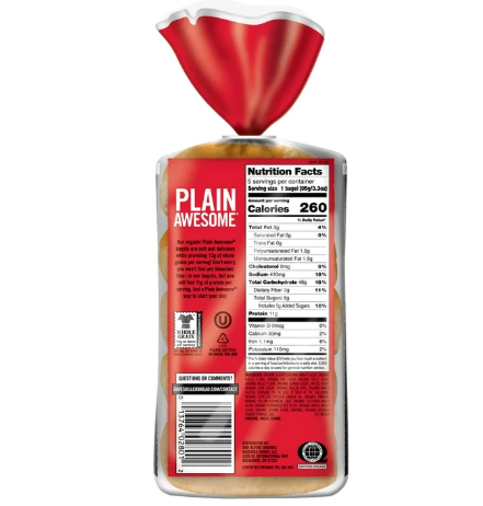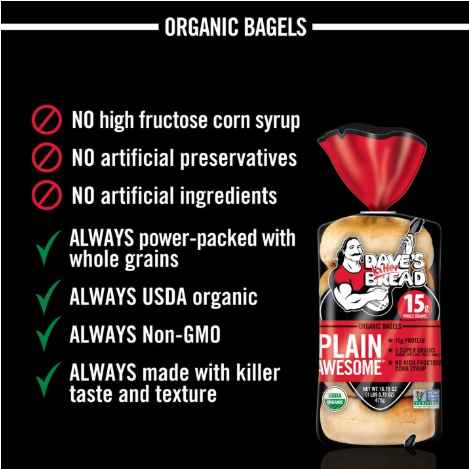 Dave's Killer Bread® Plain Awesome® Bagels are USDA organic and Non-GMO Project Verified, making them a just plain awesome way to start your day. 15g whole grains and 10g of protein per serving. These shelf-stable soft and delicious plain organic bagels are baked with five super grains, including organic quinoa, spelt, rye, millet and barley—not to mention no high-fructose corn syrup, no artificial preservatives and no artificial ingredients. You can trust Dave's Killer Bread® to deliver killer taste, texture and whole grain nutrition. Plain Awesome® bagels are pre-sliced and just what you need for easy mornings, hearty breakfast sandwiches and meals on the go. The story of Dave’s Killer Bread® began at the Portland Farmers Market, when Dave Dahl and his nephew brought some loaves of Dave's bread to sell. For Dave, this marked the beginning of a new chapter in his life. Though he grew up in a family of bakers, his life took a different path. A path that landed him in prison for 15 years. Determined to prove his worth and make a positive impact, Dave worked tirelessly to bake breads that tasted unlike anything else on the market — packed with seeds and grains, made with only the very best organic and Non-GMO Project Verified ingredients. Dave’s Killer Bread® believes everyone is capable of greatness. One in three of the company's employee partners at their Milwaukie, OR bakery has a criminal background—but your past doesn't define your future. As a proud Second Chance Employer, Dave’s Killer Bread® truly believes everyone deserves a second chance to become a Good Seed.
