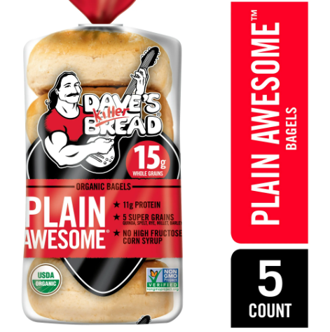 You'll get a 5 Ct (16.75 oz) of Dave's Killer Bread® Plain Awesome® bagels per package