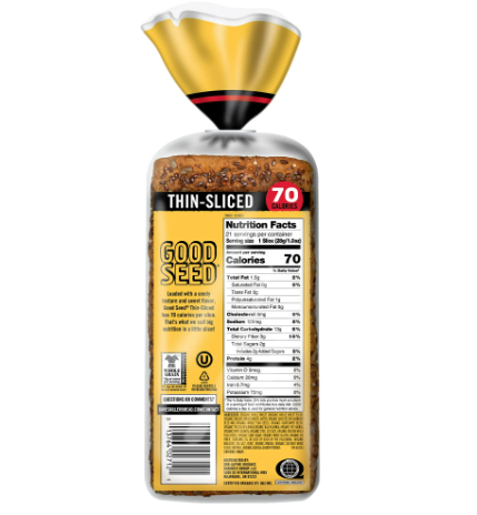 Dave's Killer Bread® Good Seed® Thin-Sliced Organic Bread Loaf is USDA organic seeded bread loaded with texture and sweet flavor. It has the bold, sweet flavor of regular Good Seed® bread loaf, but in thin sandwich bread form with 70 calories. 5g protein, 3g fiber, 520mg ALA Omega-3 and 13g whole grains per slice. That's what we call big nutrition in a little slice! Plus, each baked shelf-stable bread slice features a seed-coated crust providing the killer texture you know and love from Dave's. Dave's Killer Bread has no high-fructose corn syrup, no artificial preservatives and no artificial ingredients. You can trust Dave's Killer Bread to deliver killer taste, texture and whole grain nutrition. Good Seed® Thin-Sliced is the sliced sandwich loaf you need for toast and snacks. With heavenly texture and saintly flavor, Good Seed® Thin-Sliced Organic Bread is the boldest and sweetest of our breads. The story of Dave's Killer Bread® began at the Portland Farmers Market, when Dave Dahl and his nephew brought some loaves of Dave's bread to sell. For Dave, this marked the beginning of a new chapter in his life. Though he grew up in a family of bakers, his life took a different path. A path that landed him in prison for 15 years. Determined to prove his worth and make a positive impact, Dave worked tirelessly to bake breads that tasted unlike anything else on the market and packed with seeds and grains, made with only the very best organic and Non-GMO Project Verified ingredients. Dave's Killer Bread® believes everyone is capable of greatness. One in three of the company's employee partners at their Milwaukie, OR, bakery has a criminal background, but your past doesn't define your future. As a proud Second Chance Employer, Dave's