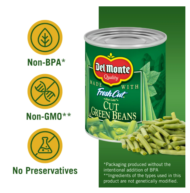Del Monte Canned Vegetables are non-GMO and packed in non-BPA lined cans