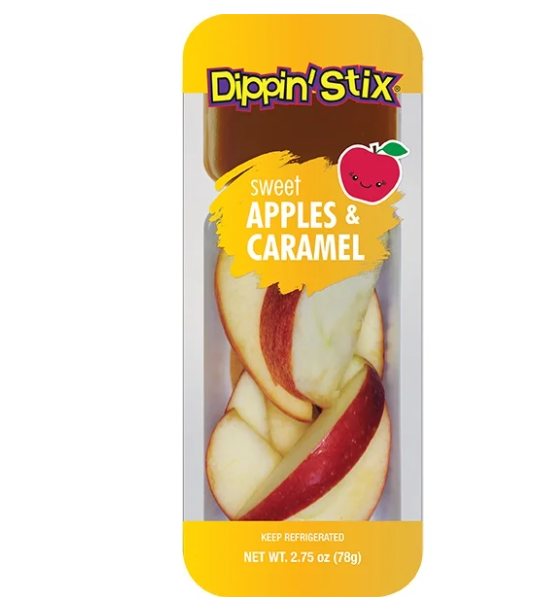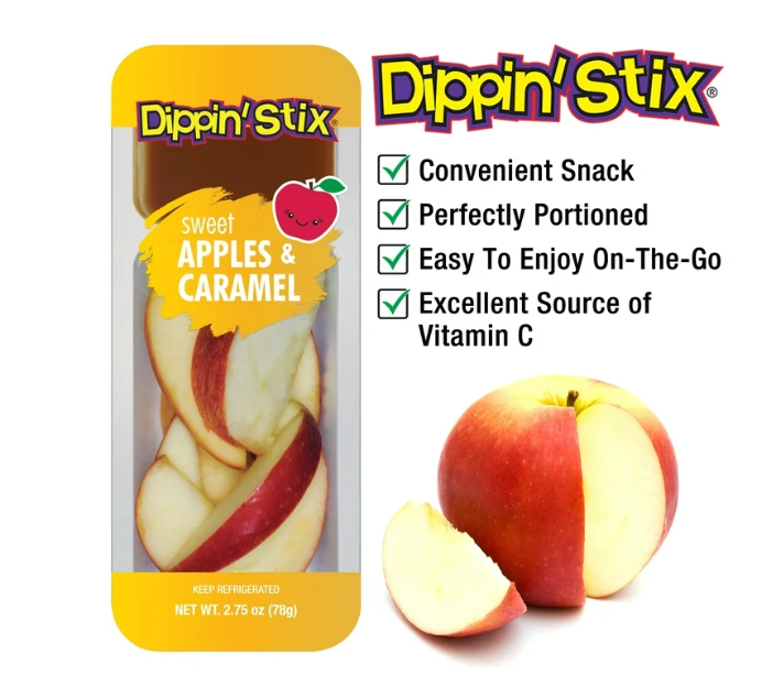- Dippin’ Stix single-serve apple snack packs are a popular go-to snack for busy families.