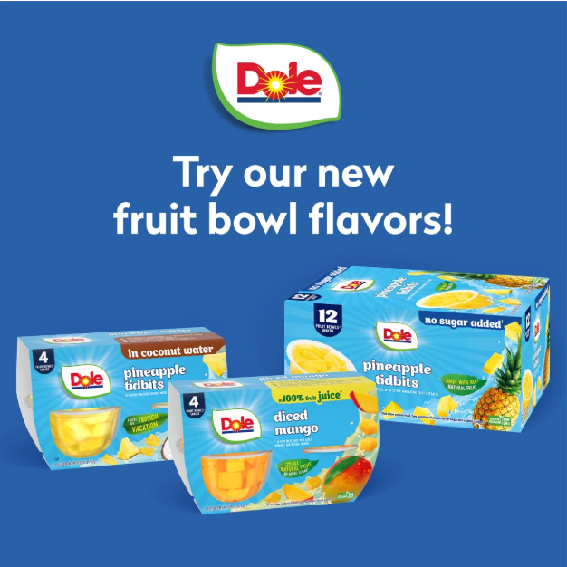 Enjoy 100% All Natural Fruit with Dole: Fruit Bowls, Fruit Juice, Canned Fruit, Jarred Fruit, Frozen Fruit Smoothies, Frozen Acai Bowls, and Frozen Dippers
