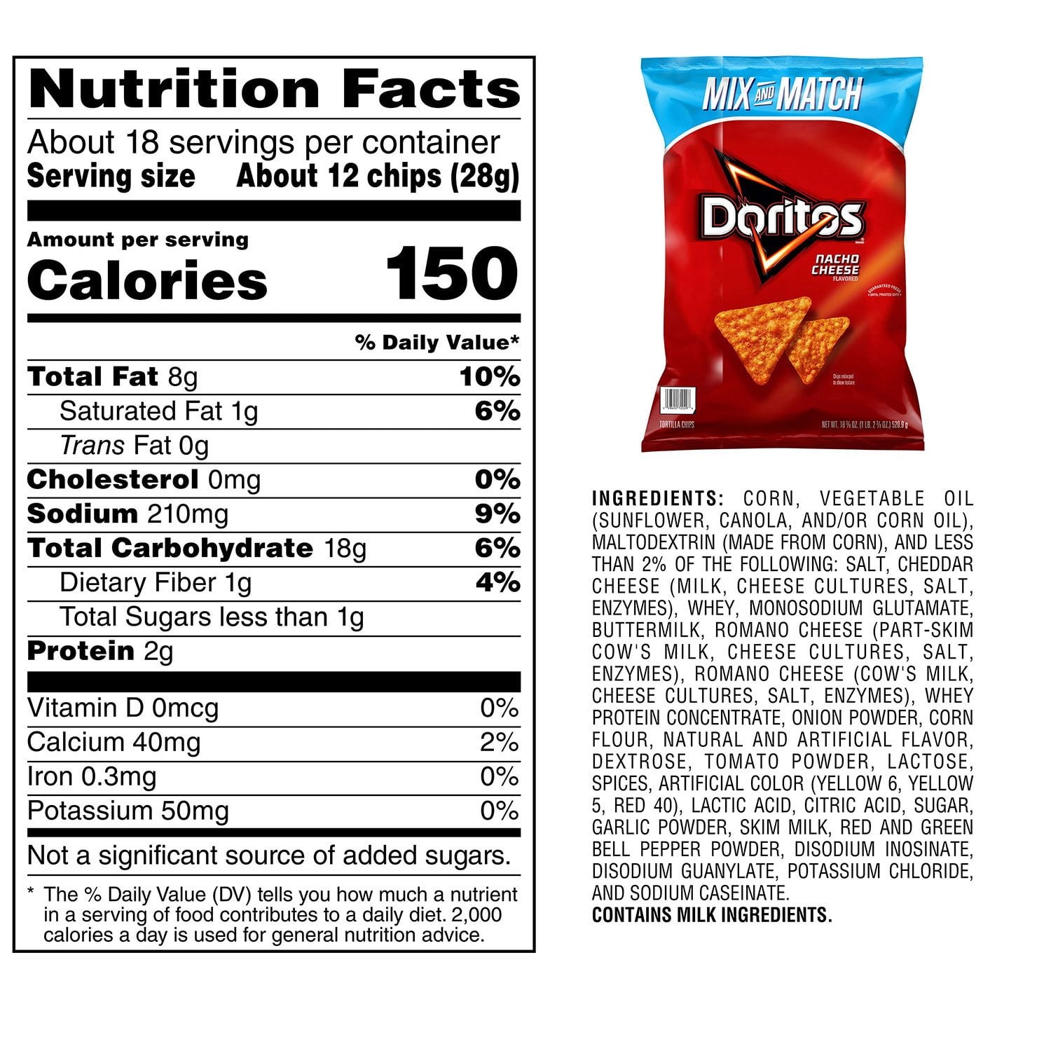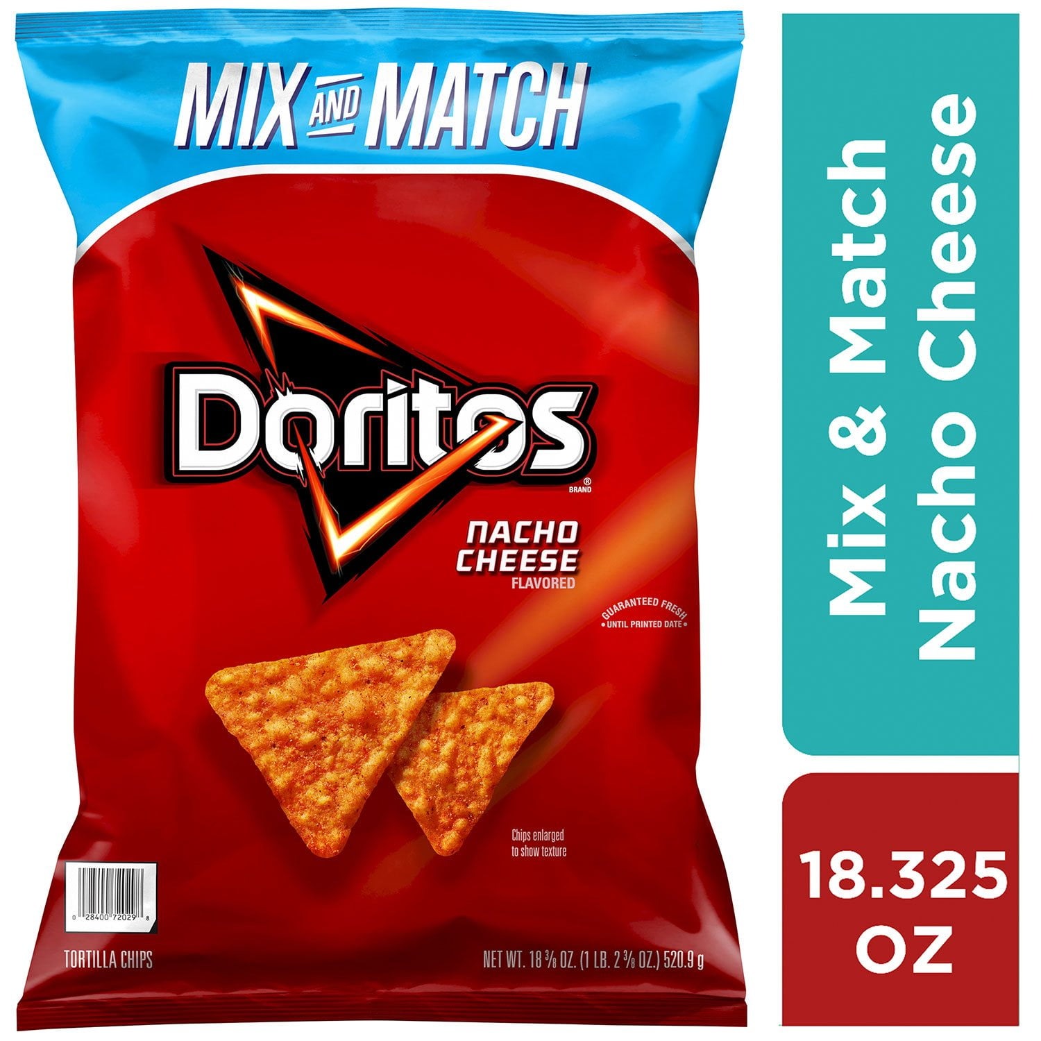 Seasoned with the irresistible flavor of nacho cheese, DORITOS Nacho Cheese chips are a snack-time favorite. Enjoy the satisfying crunch, distinctive triangular shape, and bold taste that delights your palate and satisfies your hunger. Reach for a bag of DORITOS Nacho Cheese Tortilla Chips for your next party, or whenever you're in the mood for a truly delicious snack.