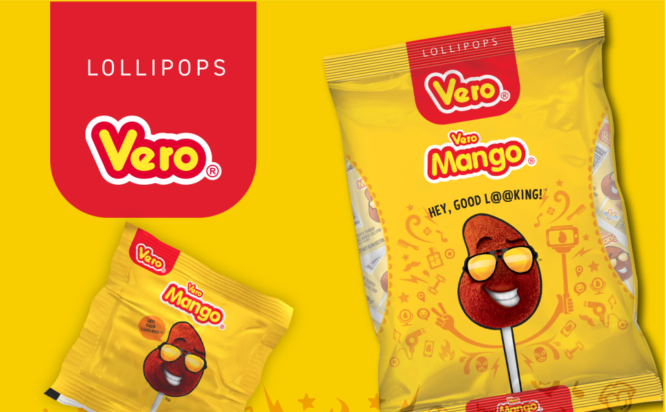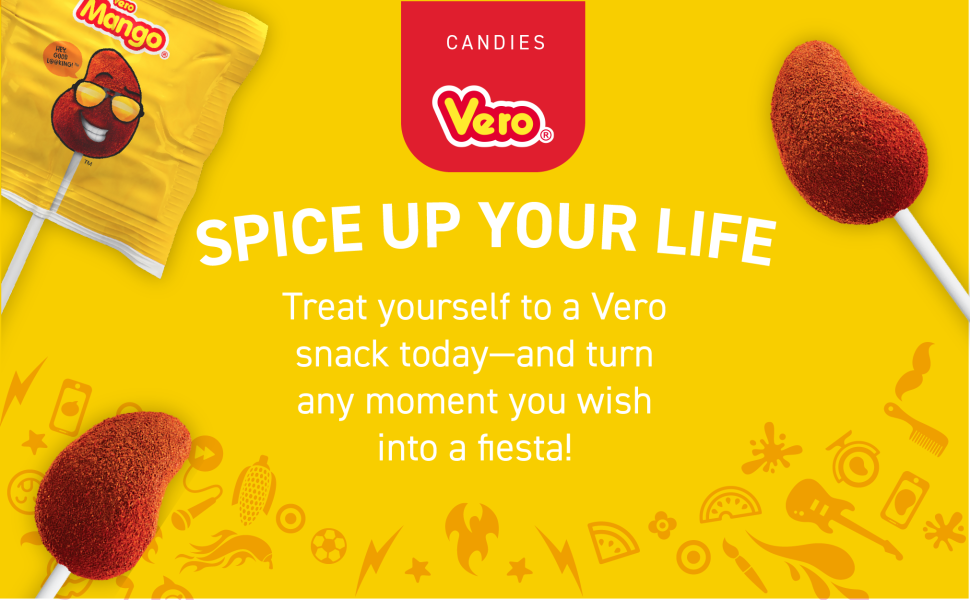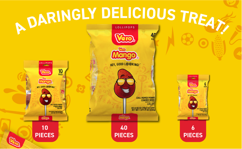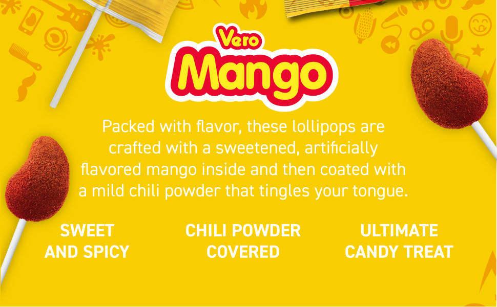 Dulces Vero Mango Candy Lollipops with Chili Pepper Powder, 10 Count Bag