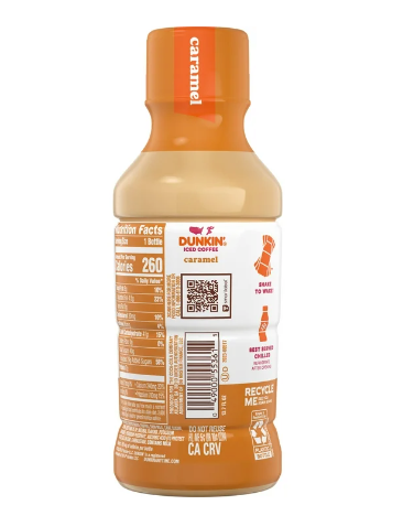 - 13.7 fl oz bottle of Dunkin' Caramel Iced Coffee
