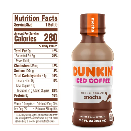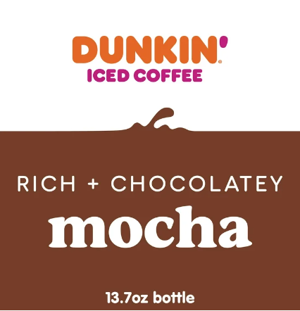 - 13.7 fl oz bottle of Dunkin' Mocha Iced Coffee