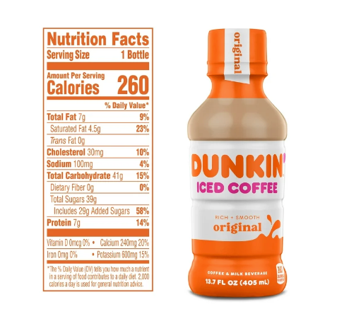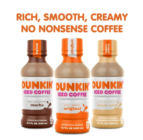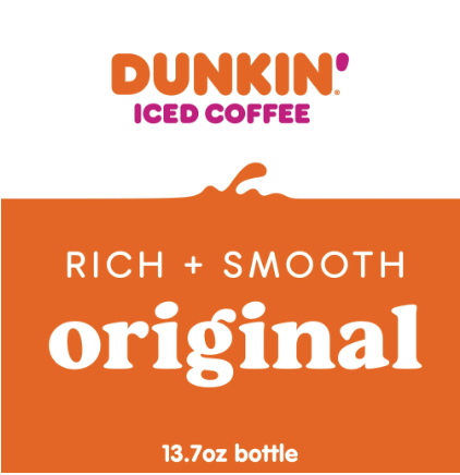 - 13.7 fl oz bottle of Dunkin' Original Iced Coffee
