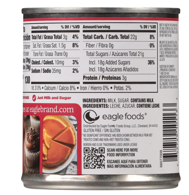 Made from milk and sugar. Rich, creamy texture perfect for desserts like pies, fudge, and ice cream. Gluten-free.
