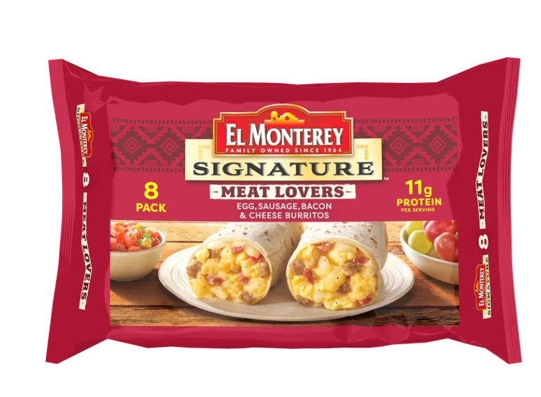 El Monterey Signature Meat Lovers Egg, Sausage, Bacon & Cheese Burritos, 36 oz, 8 Count (Frozen)