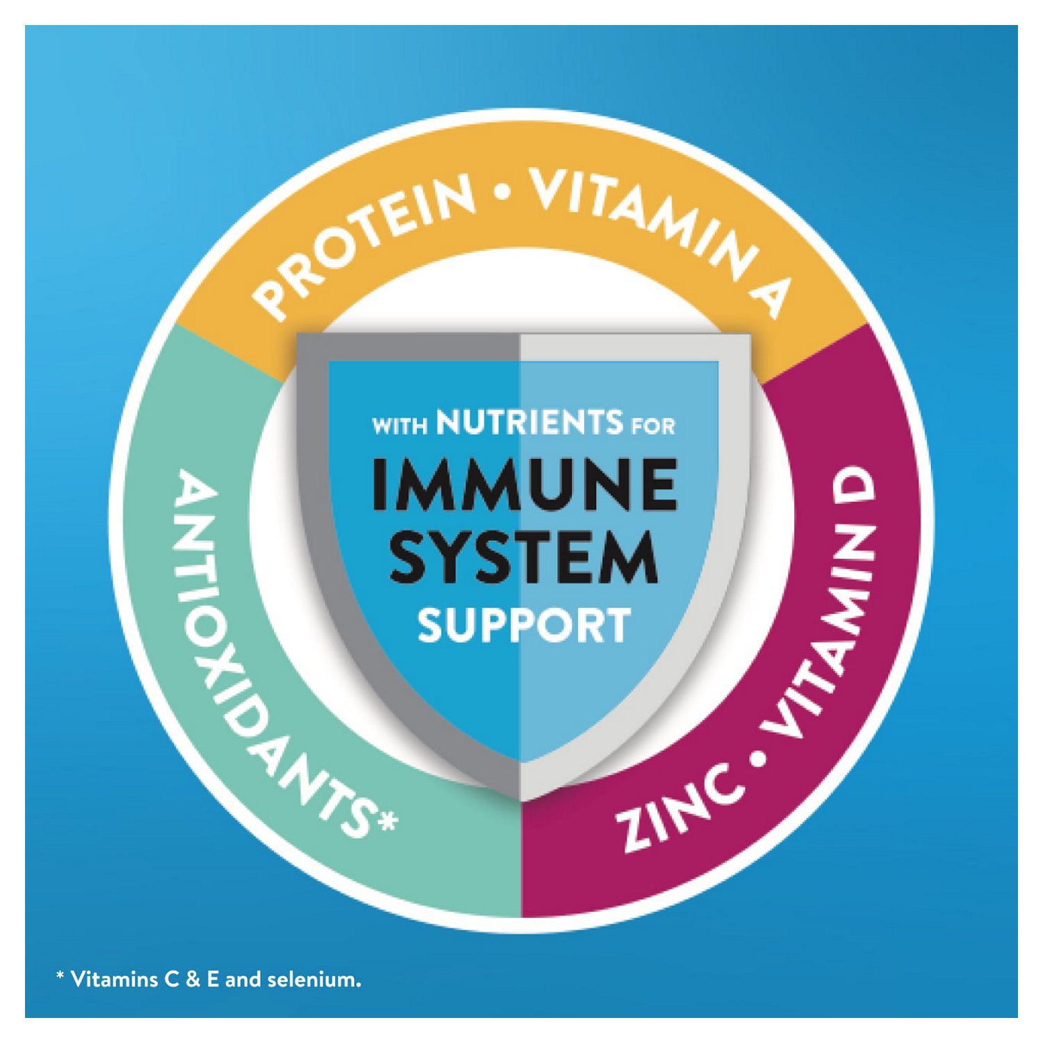 Zinc helps support synthesis of new immune cells and antioxidants** help protect cells from oxidative damage. Protein helps supply fuel and building blocks for immune cells. Vitamins A, C, and D help sustain healthy skin and tissue in the mouth, stomach, intestines, and respiratory system.