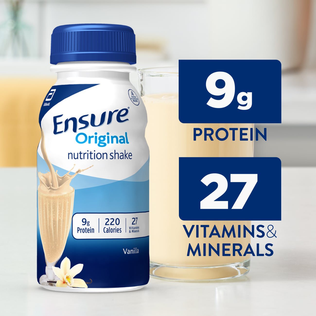 Ensure Original provides complete and balanced nutrition. Our nutrition drinks have high-quality protein to support muscle health, vitamin D and calcium for bone health, omega-3 alpha-linolenic acid (ALA) to support heart health, and nutrients for immune support.