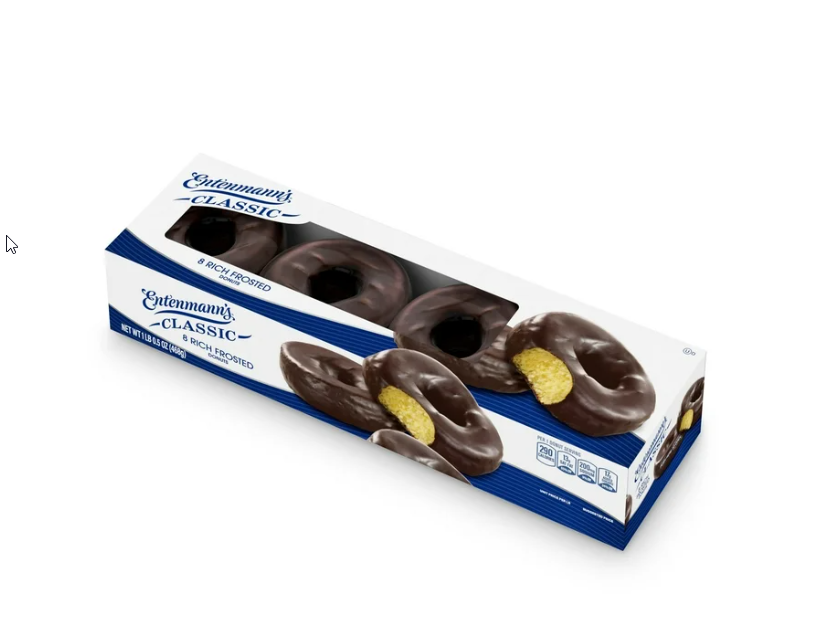 Entenmann's Donuts feature rich chocolate frosting that adds a delicious layer to classic cake donuts; perfect for satisfying your sweet tooth or enjoying alongside coffee or milk.