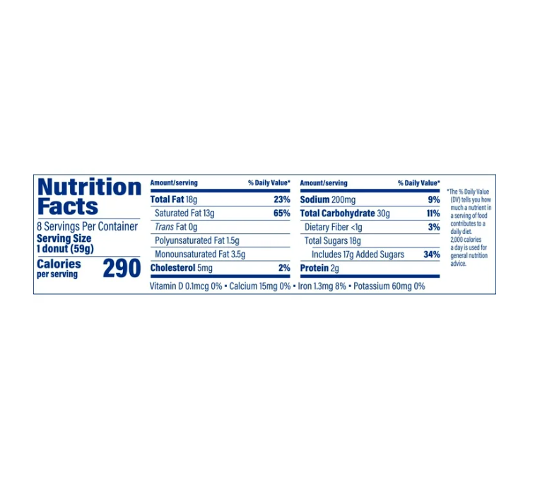 Soft cake donuts ideal for breakfast or snacks; includes eight donuts in a convenient package to satisfy your sweet cravings anytime.