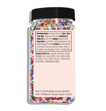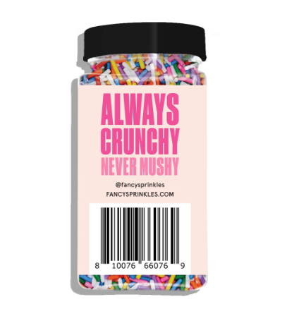ALWAYS CRUNCHY, NEVER MUSHY: Unlike waxy sprinkles, FANCY SPRINKLES Crunchy Jimmies have a light, sweet, and crispy texture that stays crunchy