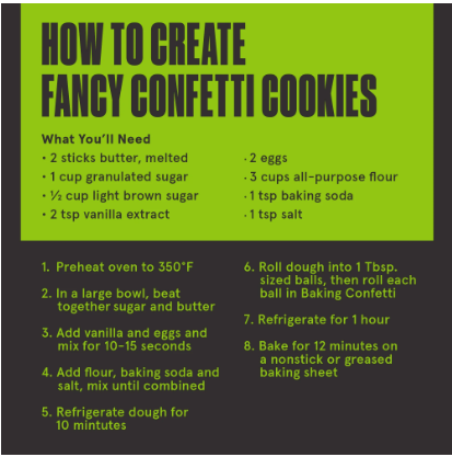 MORE WAYS TO CELEBRATE: Bake it on top of cookie dough or in cupcake and pancake batter; Top it on ice cream, yogurt, and frosting; Enjoy on popcorn or other snacks, or straight from the bag—we won't tell