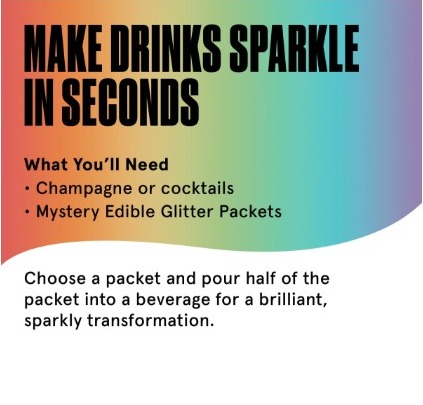 PREPARE TO BE MYSTIFIED: Whether it's brunch with your besties or a glamorous get-together, this edible glitter adds a touch of elegance to any drink, from cocktails, mocktails, or sparkling water