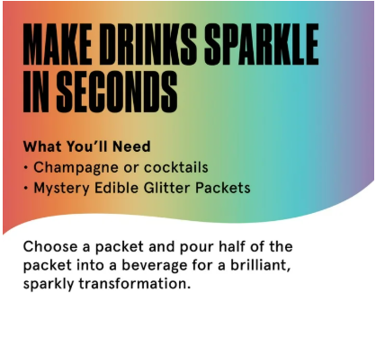 PREPARE TO BE MYSTIFIED: Whether it's brunch with your besties or a glamorous get-together, this edible glitter adds a touch of elegance to any drink, from cocktails, mocktails, or sparkling water