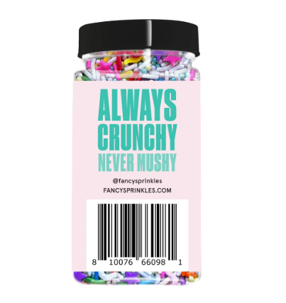 ALWAYS CRUNCHY, NEVER MUSHY: Unlike waxy sprinkles, FANCY SPRINKLES Crunchy Jimmies have a light, sweet, and crispy texture that stays crunchy