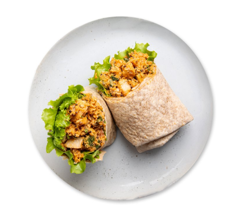 Whole Wheat Tortilla (Whole Wheat Flour, Enriched Unbleached Flour (Wheat Flour, Niacin, Reduced Iron, Thiamine Mononitrate, Riboflavin and Folic Acid), Water, Vegetable Shortening (Contains One or More of the Following: Palm Oil and/or Olive Oil), Contains 2% or Less of the Following: Salt, Leavening (Sodium Acid Pyrophosphate, Sodium Bicarbonate, Cornstarch, Monocalcium Phosphate), Wheat Protein, Preservatives (Calcium Propionate, Sorbic Acid), Dough Conditioner (Fumaric Acid, Xanthan Gum, Mono- and Diglycerides, Sodium Metabisulphite), Chicken Breast (Chicken Breast, Water and 2% or less of: Salt, Sugar, Dextrose, Sodium Phosphate, Natural Flavoring. Browned in Oil), Cooked Quinoa (Water, Organic White Quinoa, Organic Red Quinoa, Organic Black Quinoa), Green Leaf Lettuce, Poblano Peppers, Vegenaise (Expeller-Pressed Canola Oil and Safflower Oils, Filtered Water, Brown Rice Syrup, Apple Cider Vinegar, Soy Protein, Sea Salt, Mustard Flour, Lemon Juice Concentrate), Greek Yogurt (Grade A pasteurized skim milk, cream, milk protein concentrate, tapioca starch, pectin, enzymes, live active cultures: S. thermophilus, Bulgaricus, L. acidophilus, Bifidus and L. casei), Celery, Red Cabbage, Lime Juice (Water, Lime Juice from Concentrate), Cilantro, Taco Seasoning (Cornstarch, Salt, Spices, Paprika, Chile Powder, Onion, Garlic), Guajillo Chile Powder (Dried Guajillo Chiles), Lime Juice Powder (Ip Maltodextrin, Lime Juice Solids), Paprika, Chili Powder (Salt, Ground Chili Pepper, Paprika, Cumin, Coriander, Dextrose, Soybean Oil, Red Pepper, Garlic Powder, Oregano), Coarse Sea Salt (Sea salt, yellow prussiate of soda to prevent caking)