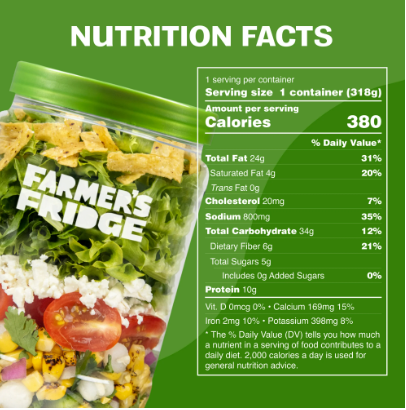 - Fresh Whole Ingredients: Farmer's Fridge products are made fresh and free from unnecessary additives—just real food, real flavor. No artificial preservatives.