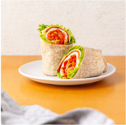 Fresh-Cut Crunch: Crisp lettuce and roasted red peppers wrapped in a whole wheat tortilla bring texture and balance to every bite.