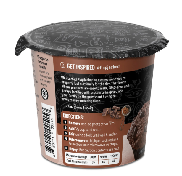 Your chocolate cravings are about to be satisfied! Not too sweet, this Double Chocolate Mighty Muffin is the ultimate dark chocolate delight. We use hearty gluten-free oats, natural cocoa powder, and chunks of pure bittersweet chocolate that will melt in your mouth with every bite. We’ve even added probiotics to support your immune health. Simply add water, microwave for about 35 seconds and you have a delicious meal or snack on the go.
