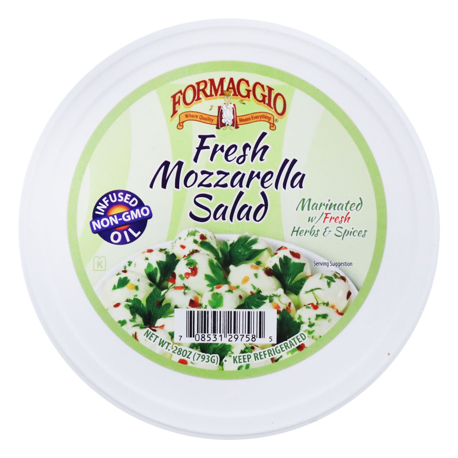 This 24-ounce salad consists of all-natural fresh mozzarella cheese pieces in Formaggio's signature marinade, which includes sundried tomato, parsley, vinegar, olive oil, garlic, red pepper, and other spices. It's vegetarian and gluten free and also huge on flavor. This marinated mozzarella salad makes a delicious addition to lunch and dinner and pairs with a variety of other foods, thanks to its strong Italian and Mediterranean flavors. And because it's made from rBST-free milk, you'll know there are no unwanted chemicals in the fresh mozzarella.