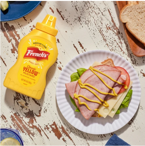 French's No Artificial Flavors Gluten Free Classic Yellow Mustard, 8 oz Bottle. For a brighter bite, reach for French's Classic Yellow Mustard. French's is the #1 Mustard in the world*, and for good reason. No corners cut, no weird stuff, just classic mustard that brings food to life with zero fat, calories, or gluten. Crafted by master grinders, French's mustard delivers smooth and tangy mustard flavor in every bite.Made with #1 grade mustard seeds, French's Classic Yellow Mustard is a must for backyard cookouts, picnics, ballgames, and tailgates ... anywhere you would enjoy a soft pretzel, hot dog, hamburgers, sandwich, or sausage. Easy to squeeze from the signature yellow bottle, this convenient condiment can be enjoyed as a dip, sandwich spread, or drizzle for your favorite foods. All with zero fat and zero calories.Every bottle of French's Classic Yellow Mustard is held to the same high standards French's has stood for over the last 100 years – consistent flavor that makes good food taste great. There are no artificial flavors, and it is gluten free. Bring on the mustard! *Source: Euromonitor International Limited, Cooking Ingredients and Meals 2023ed, French's retail value sales, World, 2022 data. This French's Classic Yellow Mustard is in a Plastic bottle that is 8 ounces. Store this shelf-stable item at an ambient temperature.
