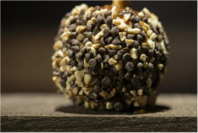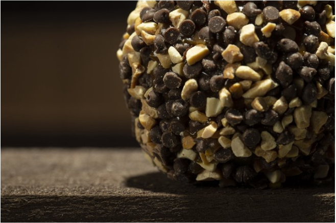 We took the caramel apple to a new level with this sweet and savory combination. Fresh Apples dipped in caramel and rolled in a mixture of crushed peanuts and chocolate drops.