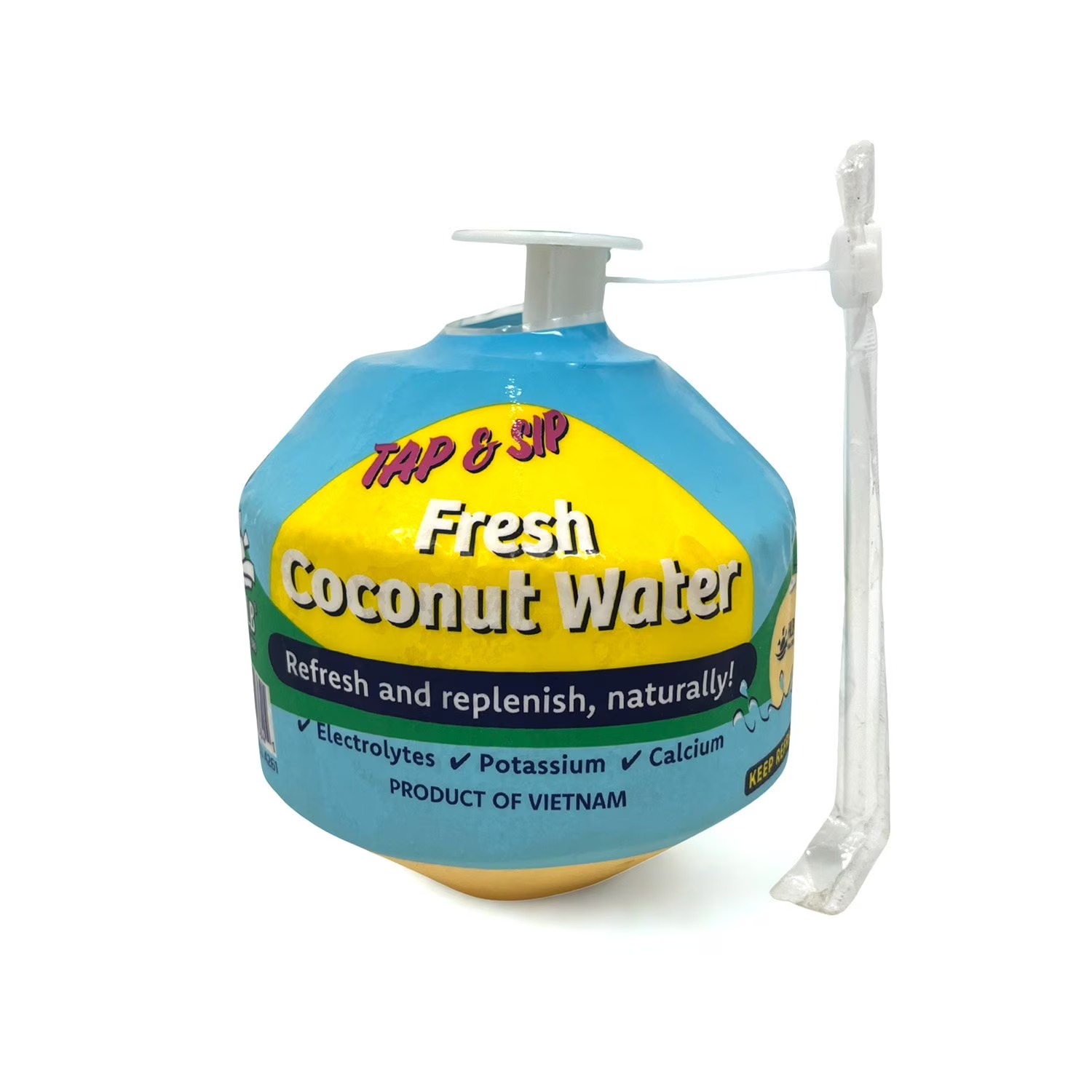 Opening your coconut is quick and simple. Pull the tab, flip it over, and apply pressure to flatten the tab to the bottom of the coconut. Remove the label, unwrap, and insert the straw. It's as easy as pop, sip, savor, and repeat!
