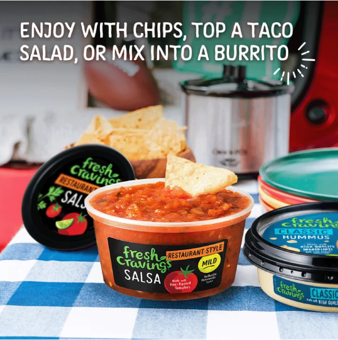 Fresh Cravings Fresh Produce, Refrigerated Mild and Restaurant Style Salsa, 16 oz Tub.