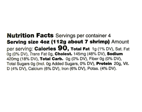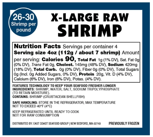 Our Fresh X-Large Raw Shrimp are expertly peeled, deveined, tail-off, and ready to cook for your convenience. Each 1-pound plastic bag contains 4 servings or 26-30 pieces of shrimp. The versatility of these shrimp lends itself to a variety cooking methods. Grill, pan fry, steam, broil, air fry, or bake - the choice is yours. They are a great low calorie, lean source of protein, packed with 20 grams of protein per 4-ounce serving. These refrigerated fresh shrimp are sustainably sourced and third-party certified as meeting the Aquaculture Stewardship Council (ASC) and Best Aquaculture Practice (BAP) standards for the entire production chain including the farm, processing plant, hatchery and feed mill. Enjoying your favorite fresh seafood is easy with our Fresh X-Large Raw Shrimp.