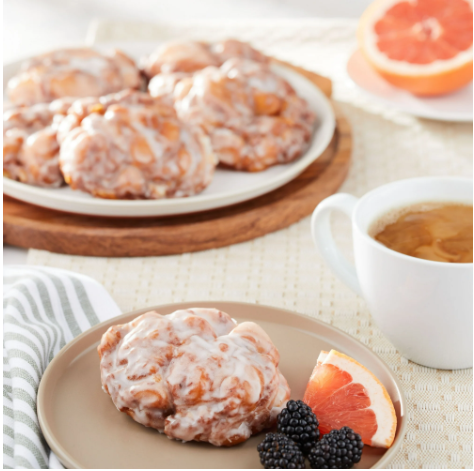 Treat your taste buds to a Freshness Guaranteed Apple Fritter. This pack of six fritters feature delicious doughnut bottom with a blend of cinnamon and apple, and they are topped with a delicious glaze to ensure a mouthful of sweetness in every bite. Freshness Guaranteed apple fritters are a great addition to any breakfast table, and they're easy to grab on the go and enjoy with a fresh cup of coffee or a glass of cold milk. For an extra special treat served warmed up with a scoop of creamy vanilla ice cream. These fritters are also perfect to serve as you entertain guests, bring to a friend's house, share with coworkers or for a delicious treat to indulge in at any time of the day. The fritters come in a re-closable box to help maintain freshness between snacking. Satisfy your sweet tooth with a Freshness Guaranteed Apple Fritter.